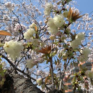 東五反田さくらの小路🌸メモリーズ vol.2…🚶 希少な緑の桜🌸ギョイコウザクラ ( 御衣黄桜 ) は💁 大輪の八重咲種が多く👀💕 開花時は淡い緑色💚🔜 徐々に黄色に💛変化して🔜 やがて花びら中心部が赤く❤染まる特徴の珍しい桜🌸です💚 御衣とは平安時代の貴族の着物を意味し緑色の花びらが萌黄色=モエギイロに近いことが由来のよーです💛 「永遠の愛」「優美」「心の平安」「精神美」が花言葉🌸 今の国内😷には必要なワードですねっ👍💗