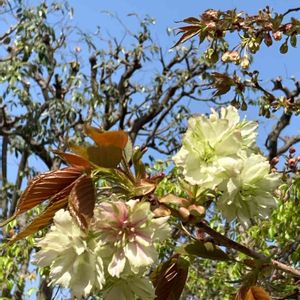 鬱金桜💛か 御衣黄💚か いつもの公園🐕🐾で咲いていました🌸✨ 薄い黄色に緑のラインが綺麗です♡ (どうも判断つかなくて、両方の🏷付けました💦) 久しぶりの青空pic(..◜ᴗ◝..)🌈 そろそろ新緑の季節へバトンタッチです🌿*.+゚ 追記) 御衣黄桜と教えていただきました💚 気まぐれ猫さん、どうもありがとうございます🤗ᵗʱᵃᵑᵏᵧₒᵤও