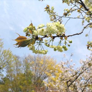 桜の最後を飾る「御衣黄桜ギョイコウザクラ」、伊勢崎西部公園に1本だけ咲いていました。😊👍🎶📸 平安時代の貴族の衣服をまとった桜(ギョイコウ)