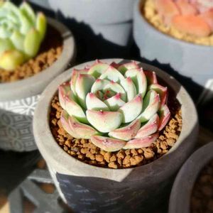多肉植物食堂さんのGWセールのお品を受け取りに行ってきました✨ そしたら、 これ育ててみて💡 と預かってきました😳💦 #シルアンス で発注したけど、色味は違うわ外葉がジュレってるはで売り物にならなかった子💦 そんなん全然かまへん😂💕 わたしの大好きな色合い✨ とりま、外葉を葉挿し様に取りまくり、成長点付近はいつもの黒ポットコース💡 後は祈るのみ🛐💦💦💦 右が注文していた #マカダミアさん わたしの脳内変換により 勝手にピスタチオだと思いこんでた………😂💦 ぼんぼんあるあるってことで 🤣🤣🤣🤣🤣 色がマカダミアよりピスタチオっぽくて、ナッツの名前だなぁで間違えてたんだな? 多肉植物食堂さん大ウケ😂💕 これはどんな風に育つかな?