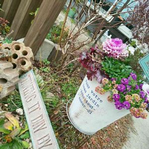 今日のお花が梅らしい✨ 梅はないからギュリュウバイの寄せ植えを🙄と思ったら後ろのドドナエアの葉っぱに丸かぶりして全く見えない😝 中心の種からビオラがまだ咲かないよぉ😅 あっついでに右に45度首をかしげてご覧ください┏(ε:)ペコリン