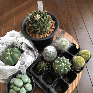 ハイ😊 昨日、🌵狩に行った収穫です。 サボテン帝冠、これは高い💦 コノフィツム(ペアルソニー)以外は、100〜300円だそうですか、値札が付いてないから、どの子が💰いくらかわかりません😿