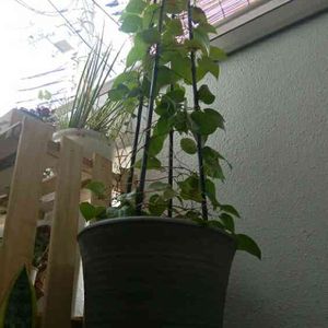 クレマチスベルオブウォーキングが沢山咲いたのですが、フェンスの上の方やフェンスを越えてお隣さんの所まで行ってたので✂️✂️✂️してキッチンに飾りました🎵