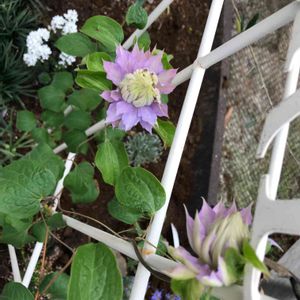 クレマチスのベルオブウォーキング 心待ちにしていた2年目での初開花です✨ 春先に昨年の枝を下の方にまとめる「つる下げ」と言うのをネットで見つけてやってみたけれど、失敗しました( ´△`) 今のところつるを下げた下の方にだけ花が咲いて、上の方は葉が茂るのみ…バランスが悪いです(・_・;