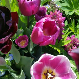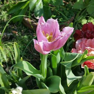 チューリップ花壇の中のひとつ。ピンク系が出てきてます(*´-`)❤ピンクピンク~♪ しかも花弁多めで、きっとこれ好きなタイプの予感。