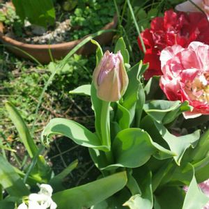 本日開花のチューリップ。これもライラッククリスタルだったはず。 チューリップのつぼみから開花が大好きです(*´-`)❤