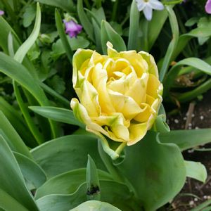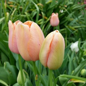 去年のチューリップが今年も出てきました。かわいい卵形と淡く微妙な色合いに心を奪われてしまう、、、(*´-`)❤ 、、、真ん中の茎に何かいましたね。最近よく見かけるこれは一体何者?