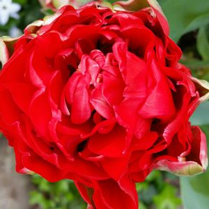 花びらの多いチューリップ。 赤の鮮やかさ、光沢、はなびらの重なり。美しいです(*´-`)❤