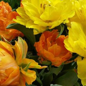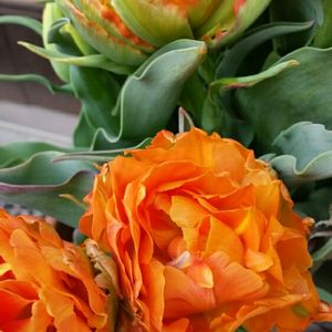 チューリップ。オレンジとイエローの色合いが好きです。 まだ完全には開いてないみたいです。