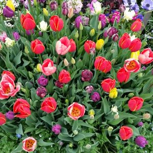 チューリップたくさん。黄色もチラホラ。カワイイ\(^^)/ 連日雨曇なので、そろそろ爽やかに晴れて欲しい。晴れてるとこで咲くのが見たい。