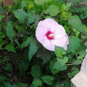 おはよう御座います。 今朝は、我が家のニュースを一つ!6月末にホームセンターのレジー下で廃棄処分になっていた、アメリカ芙蓉萎縮性をただ同然で譲ってもらい 介護した結果、今朝大輪の花を咲かせてくれました。一時は危篤状態で ドクターX、大門未知子先生に診てもらい、 大丈夫、私失敗しないので!って言われたのでお願いしていたら無事回復致しました。地上40cmしかないので可愛いですよ!