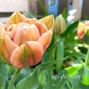 こんにちは☀️ 本当に久々の晴れです! ホッとしますね♪ 花壇に植えていた八重咲きチューリップ、ラ ベルエポックが咲きました♪ 3つ植えたんですけど何故か先に一輪咲きました ダークなアプリコット色らしいです💗 大人っぽくで素敵ですね😊 ここだけのはなし、実は植えたことをすっかり忘れていて、蕾が見えている黒っぽい方の記憶しかなかったので、なんか違うの咲いたけど!?とびっくりしたんでした😆 4ヶ月前のことすら覚えてない‥😂 今年は花壇に植えたチューリップ、葉っぱが痛んでるものが多くて心配しましたが、他のもつぼみが見えているのでなんとか大丈夫そうです😊 全然ダメそうなのもあります😢 植木鉢やプランターの方はキレイなので、なんでかなー 土が悪かったのか、寒さなのか‥ 原因を考えて来年に活かしたいです
