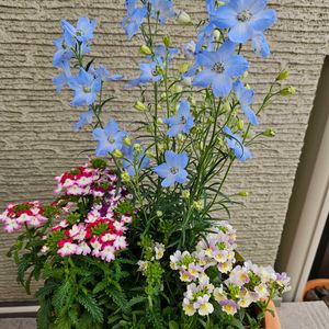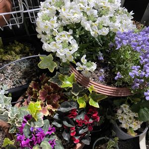 こんばんは~🙋 今日は午後から冬越し寄せ植えの入れ替えしてました🤗 🌿🤍💗♥️💜ベゴニア・カンパニュラ・ニチニチソウ・アルテルナンテラ を入れて初夏お迎え寄せ植え🥰
