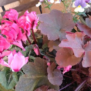 こんにちは☀ 今日はスカスカになった鉢に足し植えしました😀 ヒューケラしか残らなかった鉢にシクラメンとメネシアを🤩 華やかになりました〜