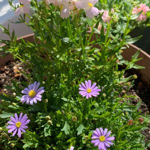 冬越しした98円ノーブランドのダイアンサス、大きく育って満開です😆💕 冬は大事な季節なのだと、実感 寄植えのガーデンシクラメンを日陰に避難、代わりにメネシアとブルーデイジーを入れました😊