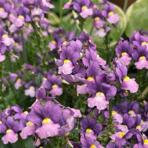 ネメシア属 (Nemesia) はゴマノハグサ科の植物。南部アフリカの固有属で、南アフリカ共和国を中心とする熱帯アフリカに分布。約60種程度が確認されている。 @神戸布引ハーブ園