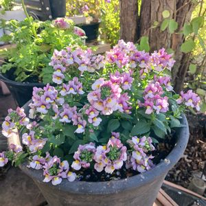 風はありますが良いお天気です 寄せ植えにしようと思っていた メネシア3株だけにしてみました