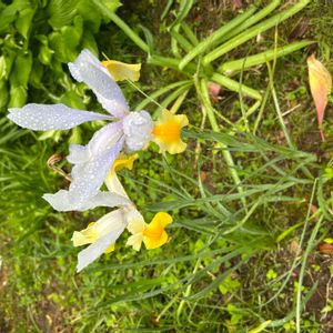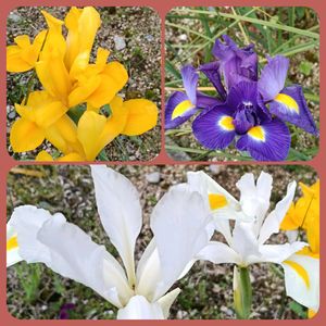ダッチアイリス (白)が咲いています♡⃛ いつも白花がひと足先に咲いて この後に黄色と青のダッチアイリス が咲きます♪ 2枚目3枚目は過去の写真ですが 黄色と青のダッチアイリス😊