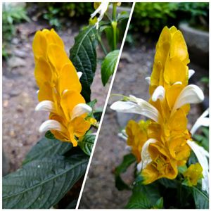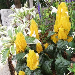新宿御苑の温室で出会った、パキスタキスルテア🍀 薄暗い温室の中で、このお花は明るく輝いて見えました✨✨✨😄 鮮明な黄色い部分は苞で、お花は真っ白です🍀 キツネノマゴ科、英名はロリポッププラント🍭こちらの名前なら、覚えられそうです😁✨💕🍀
