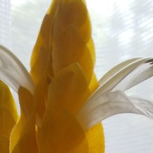 パスキタキスルテア とてもユニークですね。 黄色の部分は苞で、この間から白い花が咲くようです。 見てみたいです。