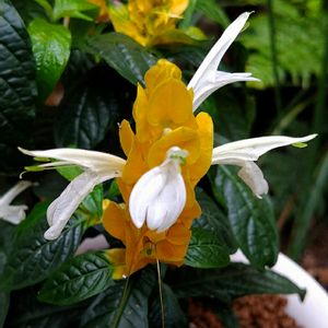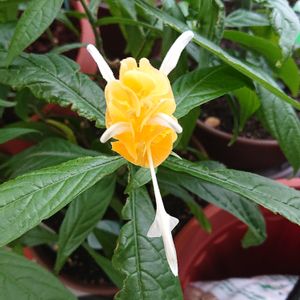 パキスタキス・ルテア メキシコの花 なんか明るいですね✴️白い部分が花びらなんですがまだ咲ききってない状態で咲くとスカウエリアカリコトリカに似てます😊調べたら同じ科目でした、キツネノマゴ科🤭かわいい😍