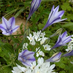 トリテレイア 紫が咲いてきて、白とコラボしました。 エリンジウムも、青さが出てきました。