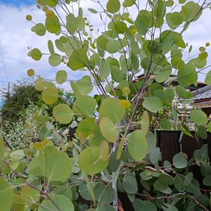 ユーカリポポラス ずーーっと前に20センチくらいの苗を購入し、今は2m超え! 鉢植えで育ててるのですが、うっかり土の上に置いたら根っこが鉢底を通り抜け地面に💦 どうしようか思案中です、、、