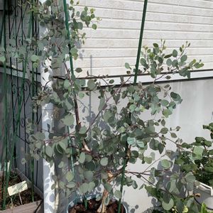 ユーカリ ポポラスを地植えにして数年、すくすく育ち、ゆうに3mは超えてしまい高さを抑えるのが難しくなってきました。かわいいんだけどね。どうしたものか。 ひと枝、玄関に吊るしてみました。 じゃまかな?