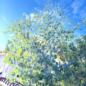 ユーカリの木 ポポラスです🌿 買ってきた苗は小さかったけど、成長がよくて剪定しても、すぐにモサモサになるのよ🌳 しかも、デカい! どうしましょう😱 狭い庭、場所とりすぎ😫 夏の観察日記📓 タイタンビカスの花の数! 本日は、13個🌺 全部で、1141個となりました〜👏