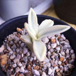 植え替えの時に土の中で真っ白に育っていたというカキコを頂いたのですが..... 一年近く経って、こんな様子... この子は白いまま育つのかなぁ?🤔
