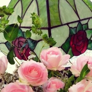 今日のお花 バラです🌹 家で育てるのは苦手ですが 切り花は 買ってきます 先日買っていた 優しいミニのスプレーバラと ステンドグラスのスタンドのバラをコラボしました この赤い色のガラスが お気に入りなんです🥰 今日はつかの間の 暖かい1日でした🤗