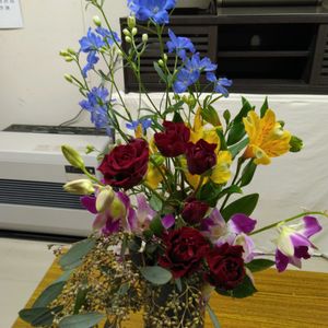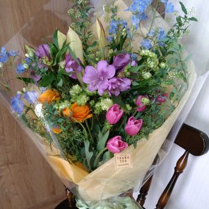 ガーデニングの会で何年もお世話になった方が転勤との事で会から花束💐 を今朝渡しました☺️ 花屋さんで花を選んでる時はとっても楽しい😁 花に値段付いてないのに、計算してもらったら予算ぴったり😁 畑では変わり水仙が次々と咲いて少し切って来ました✂️