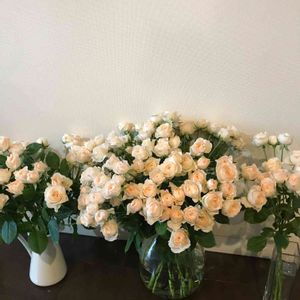 おはようございます☀ スプレーバラの二番花が咲きました🌹🌹🌹 5年前、小学生だった娘が初めて池坊の支部展に出瓶した時の花材を挿し木したものです。 今では立派な記念樹になりました🙌