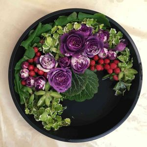 1ヶ月以上ぶりにフラワーアレンジレッスンへ♪ 「スウィートローズウィーク 」 ローズガーデンスタイル🌹 アイビーが足りなく…💦 帰宅してウチのを追加しました😆