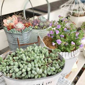 こんにちは 暖かい日差し☀️ でも昨夜からずっと風が強く吹いています 毎年お迎えする大好きな八重咲きのバコパ わき役として寄せ植えにしても、しっかり主役級になる可愛さ💜 ミニミニバラのような花☺️ グリーンアイスやミニバラの葉も生き生きしてきました🌹