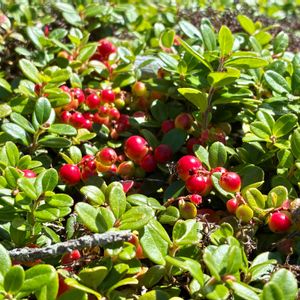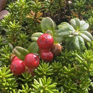 実もの5種 ①赤物/アカモノ🔴 ②岩高蘭/ガンコウラン⚫️ ③黒豆の木/クロマメノキ🔵 ④苔桃/コケモモ🔴 ⑤白玉の木/シラタマノキ⚪️