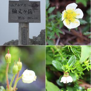 ↖︎仙丈ケ岳頂上⛰ ↗︎チングルマ ↙︎アオノツガザクラ ↘︎コケモモ 2019.8.2 仙丈ケ岳頂上前後の登山道にて
