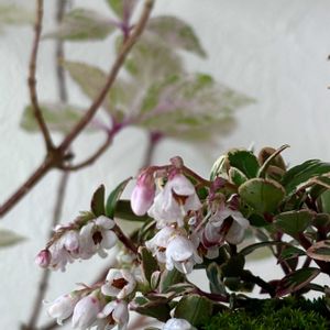 こんばんみ〜🙋 盆栽のコケモモに 花が咲いていました💞
