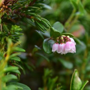 めちゃかわピンクのコケモモの花、みっけたー🤩 ベル型の花は本当にかわいい。