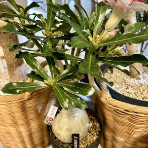 お迎え😊砂漠のバラ🌹をお迎えしました😊アデニウムオベスムFerrari😊 [アデニウム オベスム] アデニウム(adenium)の仲間は、南アフリカ、南西アフリカ、ソコトラ島、アラビア半島原産です。 美しい花が咲くものが多いため、特に原産地周辺では、大変人気があり、交配育種が進んでいます。 主だった特徴的な姿として、株元が大きく肥大する幹やその根の姿があげられますが、特に幹を肥大させるためには「実生」での栽培が必須になり、商品になるまで栽培することには時間がかかる上、遺伝的な形質を安定することが難しい植物です。 近年日本でも人気が出始めており、「砂漠のバラ」という呼び名で親しまれています。