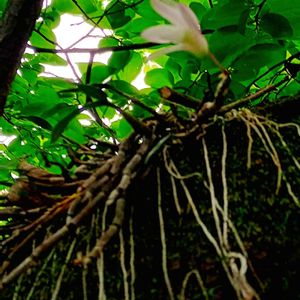 柿の枝 見上げた枝を良く見ると 蘭の花。 居心地良さそう😊