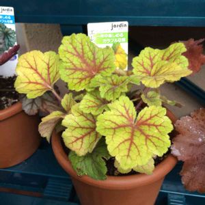 ヒューケラ鉢その1 ヒューケラが大好きで、どうやって植えようか迷った結果、やはり観葉植物好きとしてはヒューケラのみの寄せ植えで楽しもうということになりました。 上の緑のから時計回りに パリ、エレクトラ、ピーチクリスプ、ジョージアプラム、フリンジチョコ、ギャラクシー。