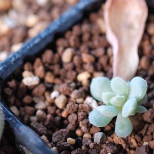 渚の夢の胴切りその後💚記録 ゆっくりですが、少しずつ成長中〜 ちなみに葉挿しはまだお子ちゃまが見えてません。 【mioモケモケ】で記録中👀