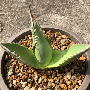 昨年の今頃植えたアガベ🌱 どうにかここまで成長しました✌️ トゲつんつん☝️☝️して欲しいな🤺
