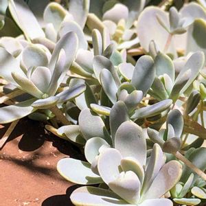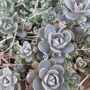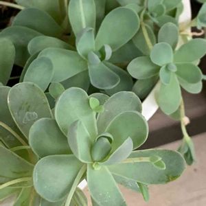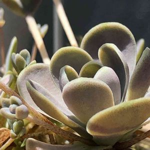 ぽってりと厚めな葉っぱはさらりとマットな質感で、白く細いランナーをすうっと伸ばした先にはイヤリングのようなちっちゃなミニミーを なんとも上品でエレガントな雰囲気の子持ち蓮華、もといオロスタキスボエメリ✨ この子がお世話要らず、放置され好き、風来坊で気ままに生きる野良多肉だとは #どこから来たの #いつの間にか