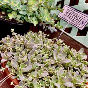 もったいない性の私は 割れた植木鉢🪴を 再利用するのを見て これだぁ❗️って 密かに やってましたぁ😁 うちの多肉さんは あまり無いので、 時間がかかりました💦 (実は 多肉さんだか、 なんだかも怪しいのよ) 唯一 知ってるのは 子持ちれんげ💕だけ ブルーグレーな 大好きな子持ちれんげが 放射状に広がって いい感じ 100均の飾りをつけて なんとか 可愛く見えるかな⁉️