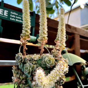 子持ち蓮華のお花が咲きはじめました🌸 下から順番にひらく姿がきれい♪︎ レッドベリーは深いグリーンから混ざったような色に変わってきていてかっこいいです(〃▽〃)