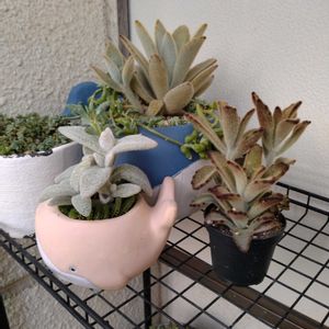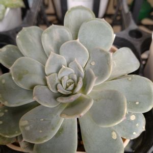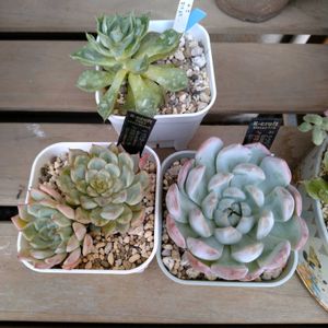 ピーチプリデが ここ数日で急に大きくなった気がする☘️🍑 隣のみどり牡丹は ずっと小さいままなのに‥🥹 pic2 だるま秀麗と月美人は ずっとこの場所でむっちり💚 pic3 ブルーエルフは茎が傷んだのでカット✂ 紅葉するかな? 今日も暑くなりそう🥵