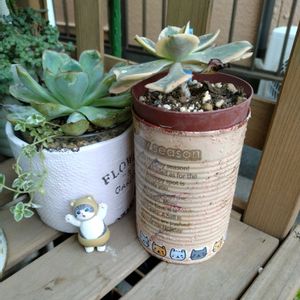 9連休の初日から取り掛かった モルタル造形の鉢カバー🏡とリメ缶🥫 ようやく完成✨🎶 今回は プレステラ75が4個入る様に作りました😄 底には100均の鉢底網を貼ってあるので 鉢としても使えるよ🎵 リメ缶はトマト缶に猫柄のと ジュースの缶を板に付けて吊り下げ型にしてみました😙 pic4 葉挿し達🌱 ゆっくりだけど育ってます🎶 🏷️ 毎月13日と14日は葉挿しの日 連休も残り半分💨 やりたい事まだまだあるけど のんびりもしたいなぁ😆