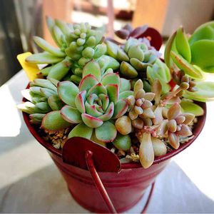 しばらくベランダに放ったらかしにしてたけど…かわいくなってた多肉寄せ植え😊 最近…多肉管理がめんどくさくなってしまい、単品を寄せ植えしょうか模索中😬